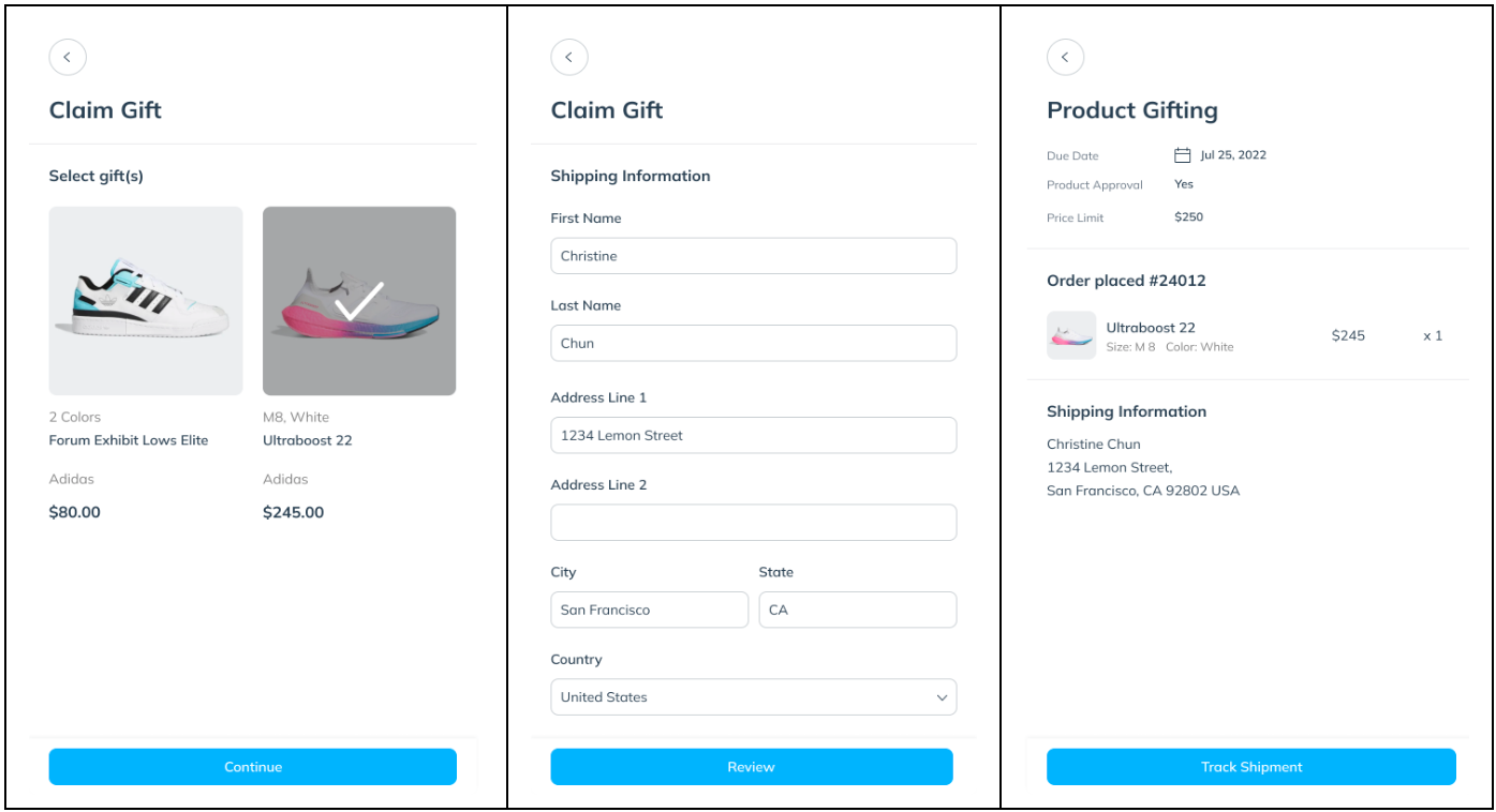 Our Product Gifting feature allows creators to select eligible products and submit the order themselves. Creators select their preferred product and track where products are in the fulfillment and shipping process from within the impact.com / creator platform.